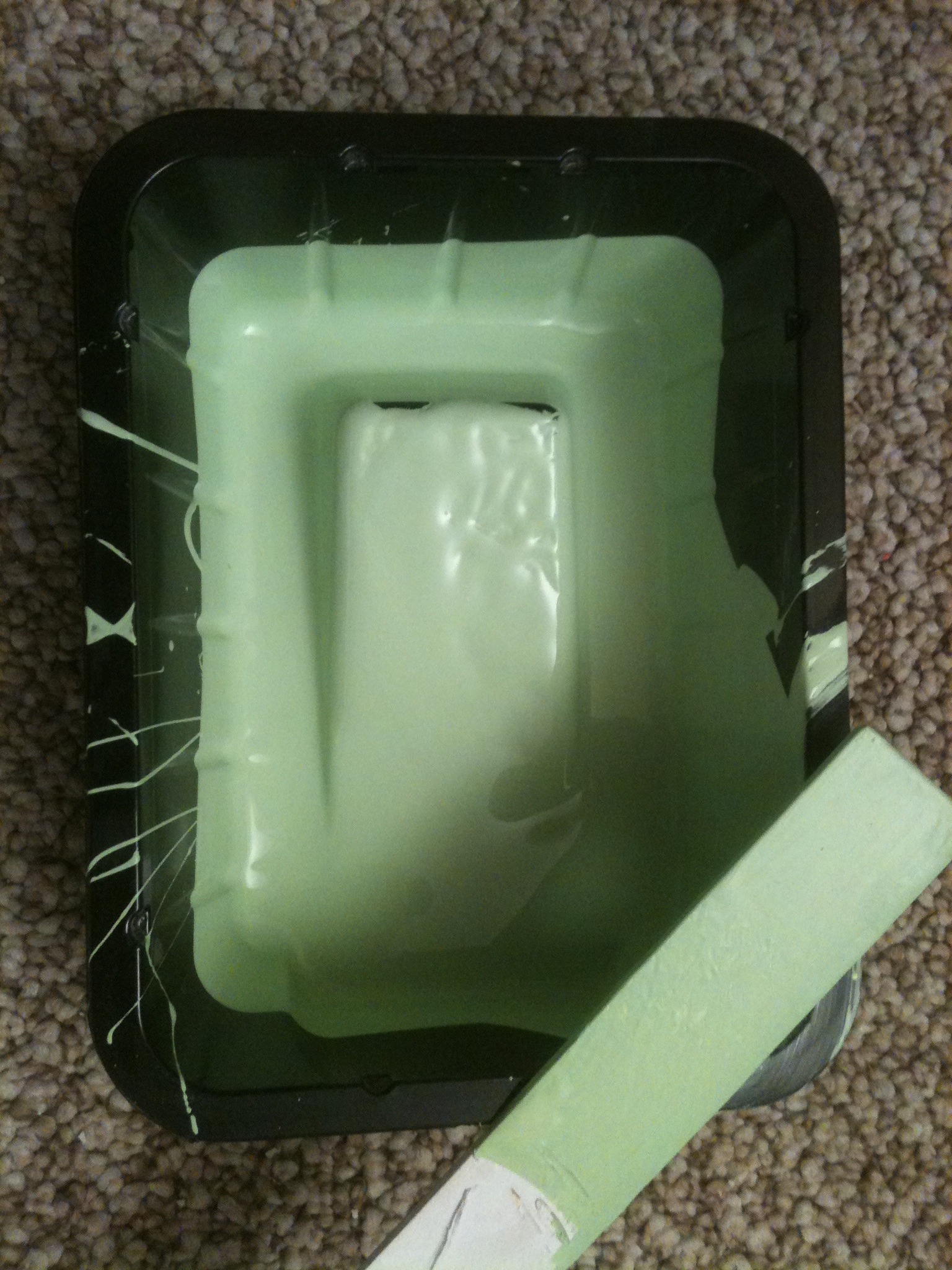 I don’t like it. It looks like green Tums. I have a big paper sample taped on to the primed kitchen door, and it is more vibrant than the sample sample. This color is too milky, too minty. I usually like mint green, but what I think I have in mind is a clear apple green.