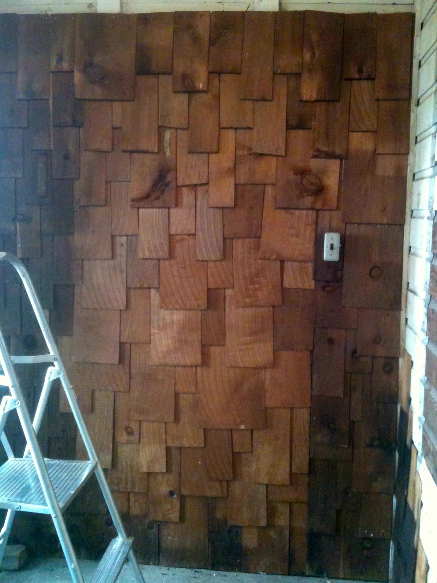 Cedar shakes on mudroom wall