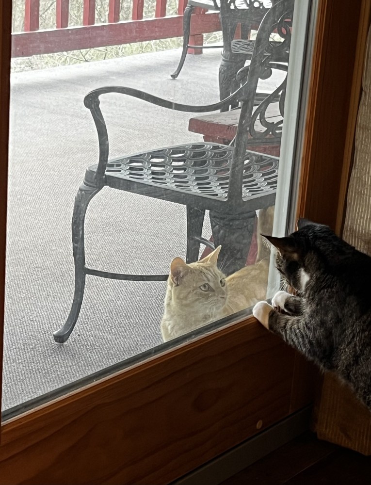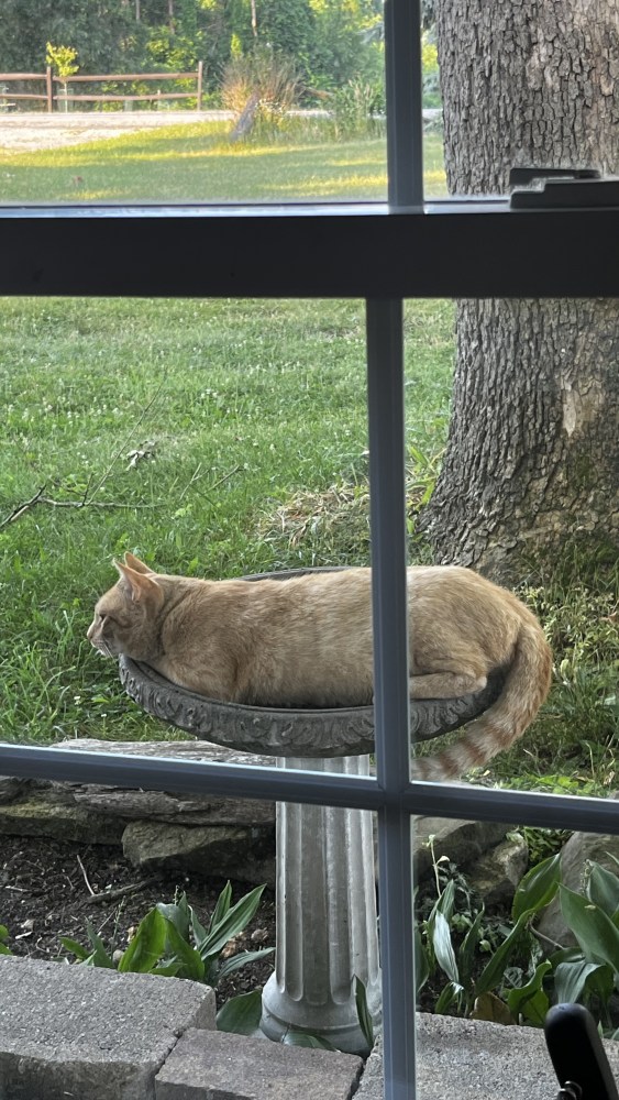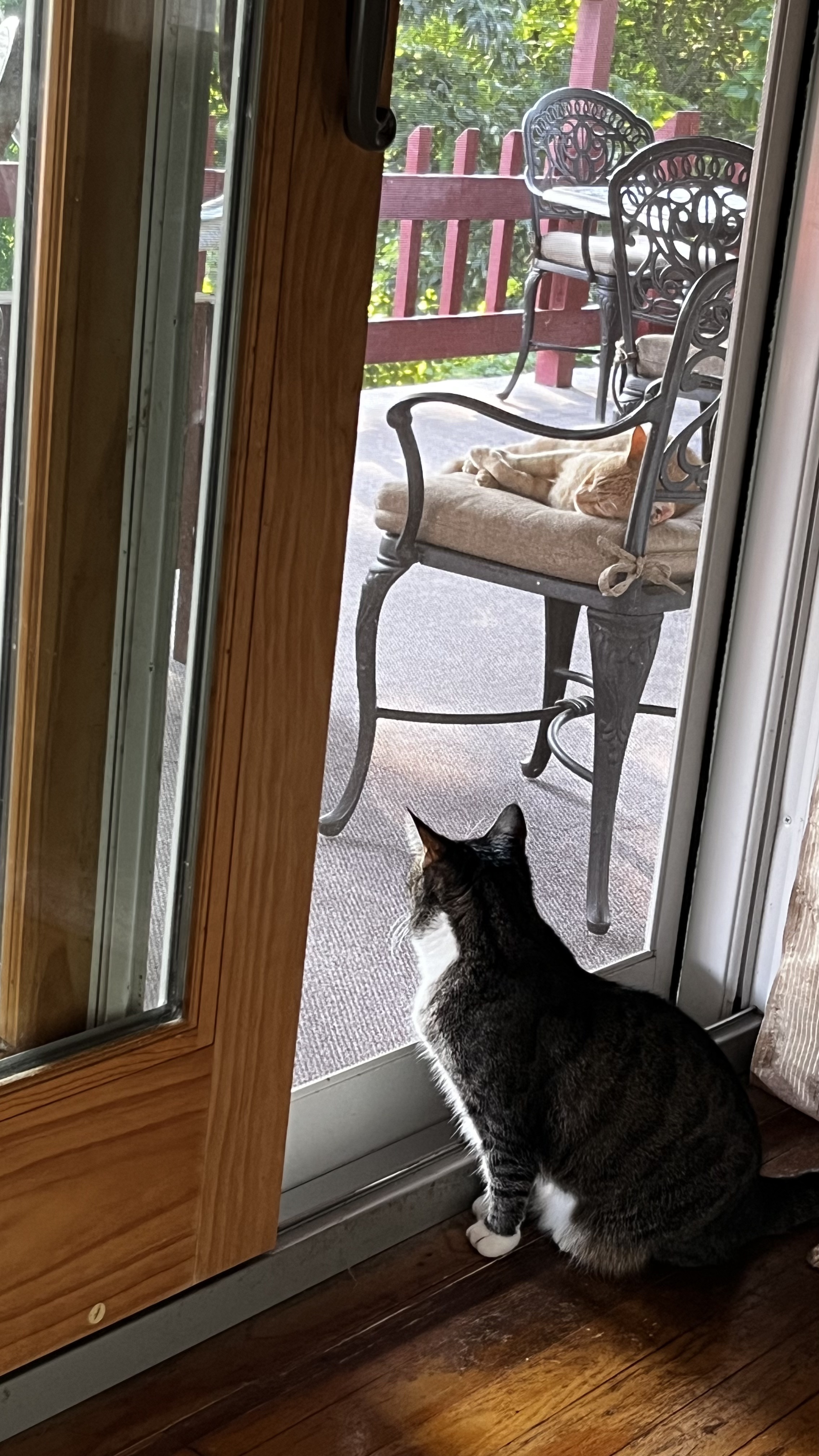 A few weeks later, he discovered how comfortable the porch furniture is. He would still run off when we opened the sliding glass doors. Until one day, he didn’t.