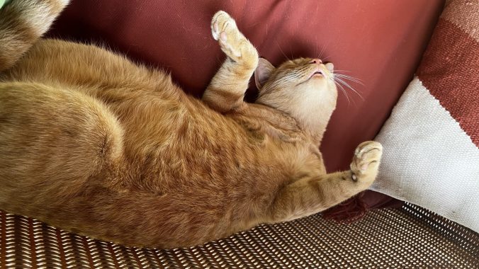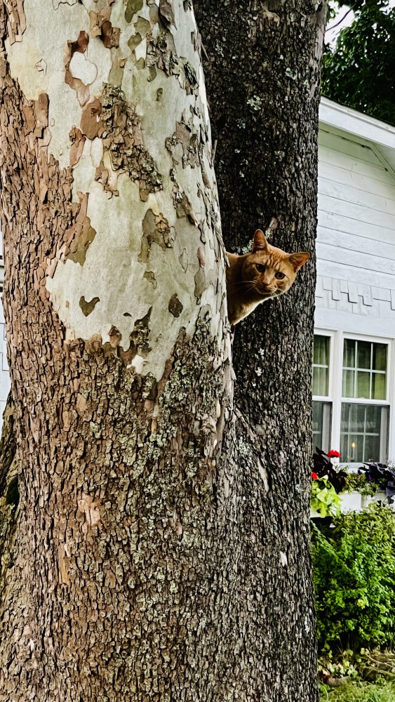 But he needed a name before he went to the vet. Mr. H.C’s mom, Clara, used to have a cat she called Little Orange. We tried that on him, but, well, he is not Little. I was reading the novel There There by native author, Tommy Orange. I looked at the book on my nightstand and said Tommy Orange! So his official name for the veterinarian is Tommy Orange. (I hope the real Tommy Orange is not offended.)