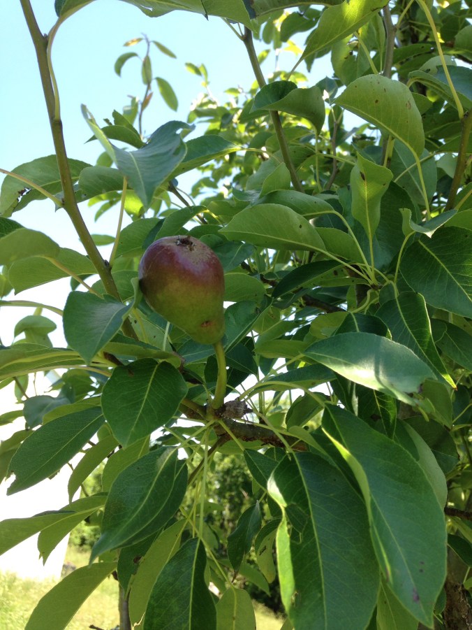 I picked off many, many, many little green apples, but I didn’t get the ladder out and cull the high branches. I should have!