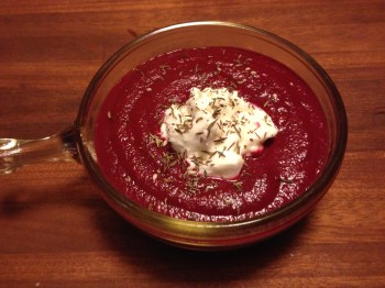 Yes, I didn’t tell you that at first because I know many of you will stop reading at the word Beet. But just look at how lovely it looks in that little soup bowl. Add a dollop of Greek yogurt and swirl it around? Mr. H.C. was dubious, but two spoonfuls later, he exclaimed, “This is delicious!” (in a surprised voice…)