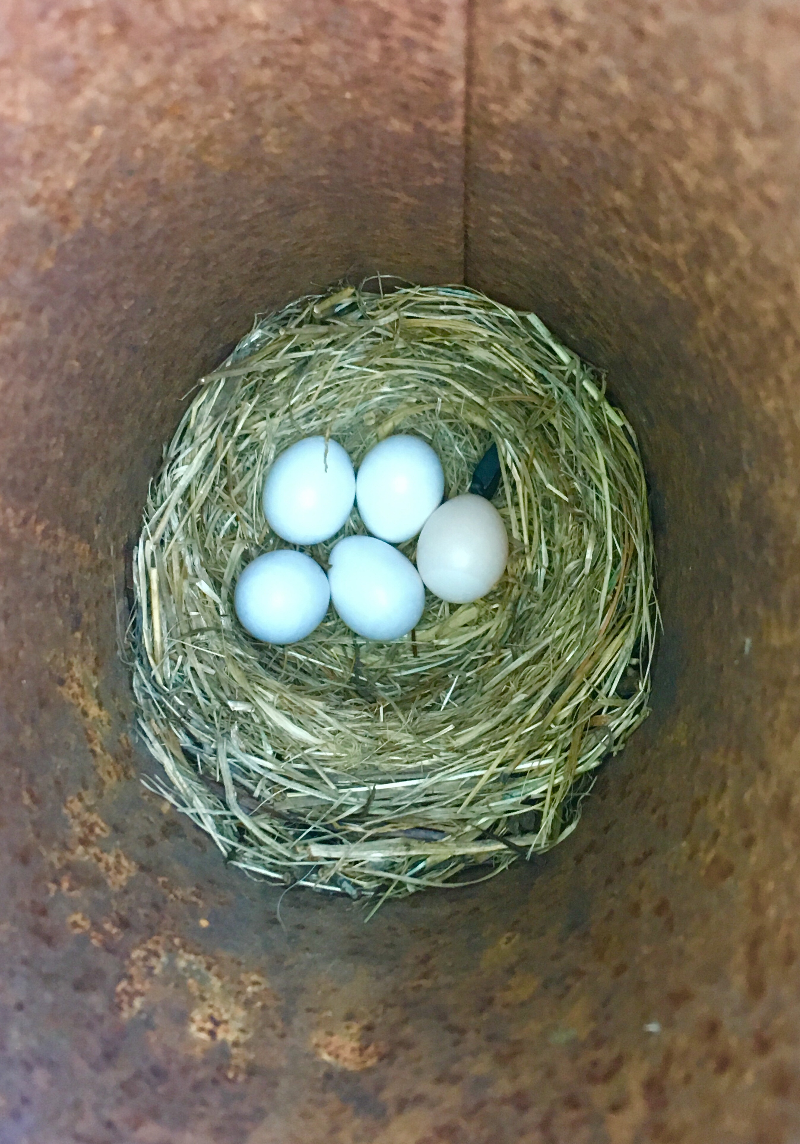 Our bird feeders are giving us much pleasure and laughter this spring. We have two hanging feeders, a suet feeder, and in the winter we put seeds in our bird bath as well as throwing out seeds on the ground. There’s a large (very large) sycamore tree right by the feeders that provides a landing place and shelter for shy birds, woodpeckers, and ground feeders. There have been all the usual suspects at the feeders all winter, especially two pairs of red-bellied woodpeckers that love the suet, and we never get tired of watching them. We have giant flocks of house finches and goldfinches, Carolina chickadees, nuthatches, titmice, mourning doves, jays, cardinals, and starlings and cowbirds too. It perks us up on those gray days; I recently downloaded the Merlin Bird ID app from the Cornell Ornithology Lab, which allowed us to participate in the Backyard Bird Count 2023. Even if it is our front yard…