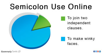Theory 5: Readers want the sentence to be over before it’s over; a semicolon means there’s more to the story. There is beauty in a semicolon allowing the writer to build on a thought; a semicolon also allows the writer to believe that the reader can follow a semi-complicated sentence. It’s about trust between the writer and the reader; yet, a semicolon is also about tone and nuance in a sentence that commas and periods just can’t get across. (Old readers never die, they just turn the page.)