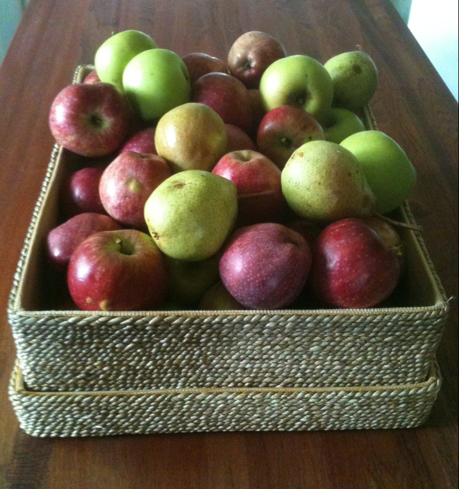 The apple trees we planted five years ago are just now getting to the age where they will produce apples regularly. So far the only good producing trees are the two bent, aged trees that were here long ago, leftovers from the old orchard. We’ve pruned them back hard, but they won’t last much longer. The young trees have had a few apples here and there, but they are mostly what my grandfather used to call “little bits a nothin’.” The trees were set back several summers ago by a devastating plague of seventeen year locusts.