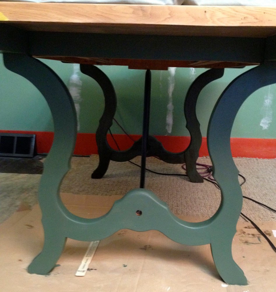 Then one fine day, she uncovered me, moved me around, and started with the sandpaper on my legs… I wasn’t sure what to think about that pot of green paint she had with her. I thought that whole paint issue had been settled. I made her bump her head a few times before I decided I rather liked that silky green paint on my legs…