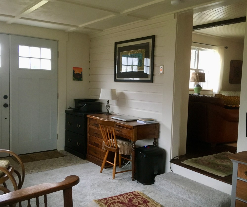 In about three weeks the job that I have loved for nine years will be ended, our city house will be almost on the market and we will be gently moving all summer (or until the house sells) to this unfinished cottage. (Please understand: I am not whining or complaining. I still love the cottage. I can’t wait to get here–I just want to wimp out about the rest of the work we have to do.)