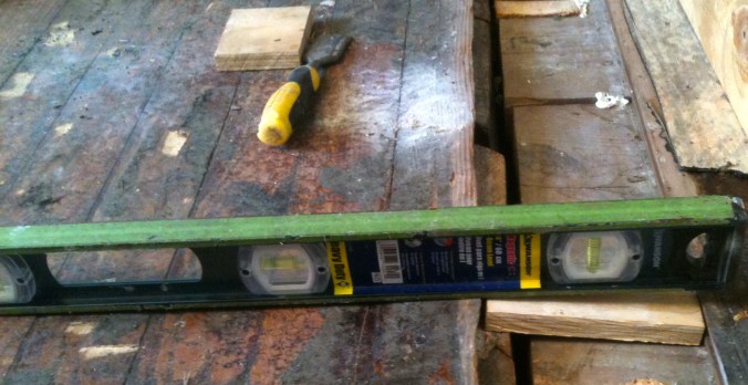 Yes, we’re trying to straighten up a crooked little house — and it’s driving Mr. H. C. bonkers. This is a man who has to have pieces meet within a thirty-second of an inch. And that level bubble? Well it has to be right between those lines, as close to the middle as it can be. Poor guy. Some days he just shakes his head. Some days he wonders aloud why we ever got into this. And some days when the bird clock whistles 5:00, he just… Continue reading