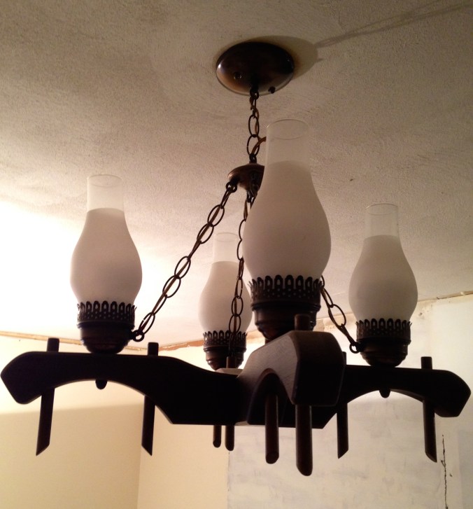 It wasn’t too long ago when I wrote about this lovely chandelier and wished it gone from the ceiling!